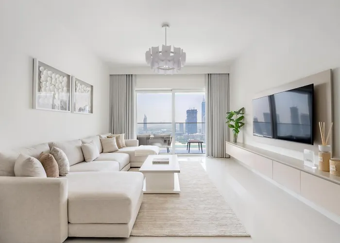 Appartamento Designer 2-Br - Sea View - Grand Bleu By Elie Saab Dubai, di 123 m^2, è un luogo ideale per soggiornare nel quartiere Palm Jumeirah di Dubai, a una distanza di 4 km dal Parco Acquatico Aquaventure. Il Wi-Fi e il parcheggio privato gratuito sono a disposizione degli ospiti per il massimo comfort.